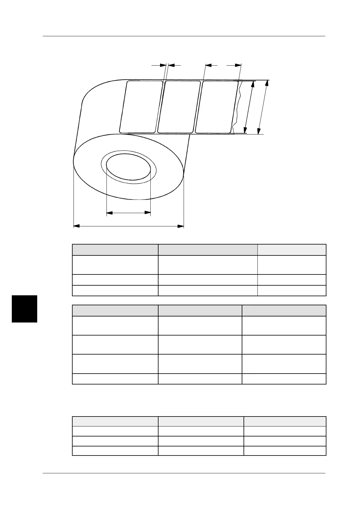 4.3.14 Dimensions of label roll, take--up reel, labels