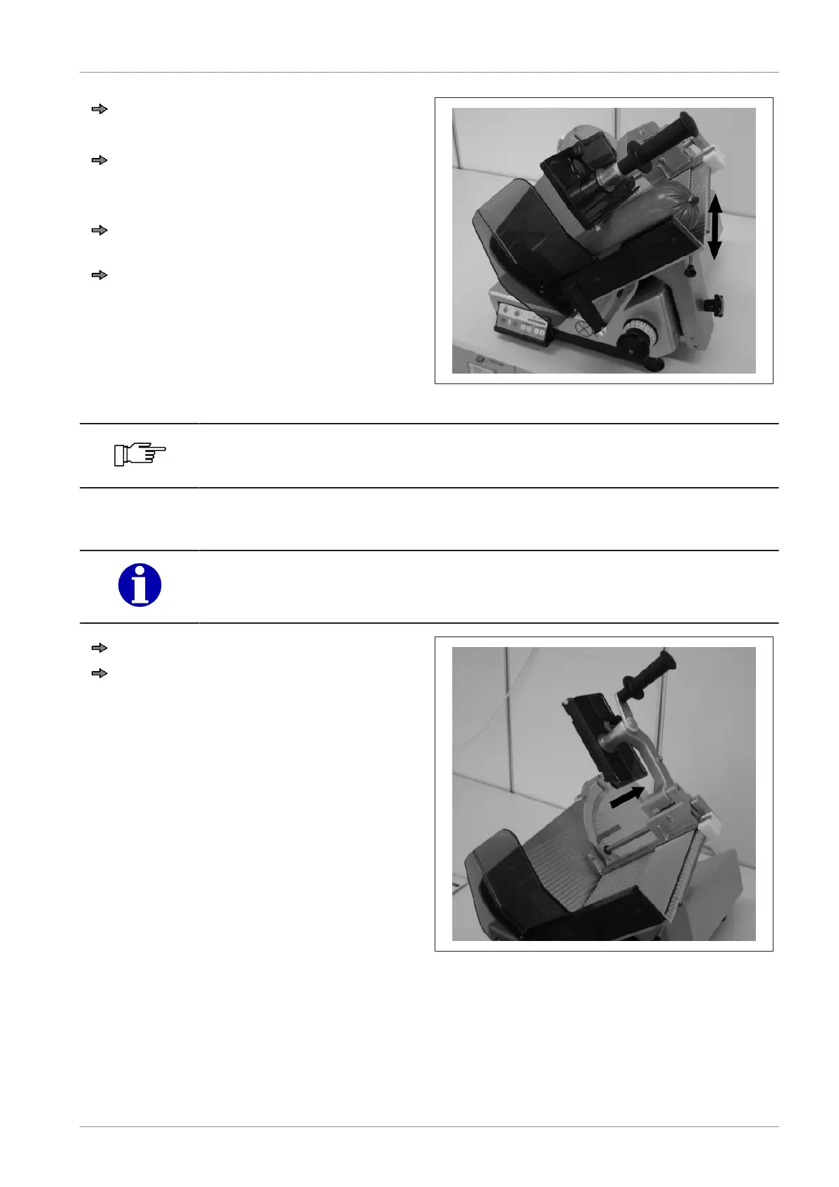 The product holder is force-guided in an area of < 60mm to the blade and