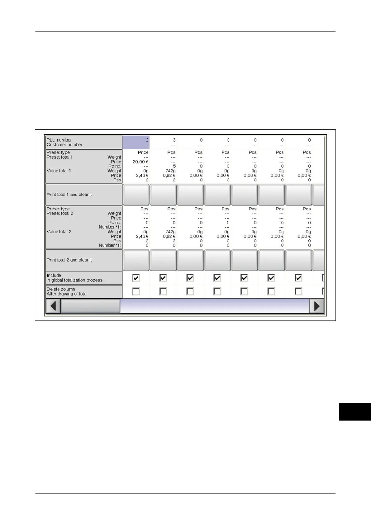 <PLU dynamic>) or for the weight classes of the current weight class table (totalization