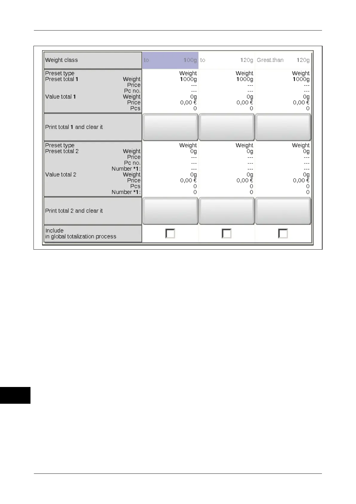 "Customer No.:": Only for PLU-related total preselection: Customer number dis-