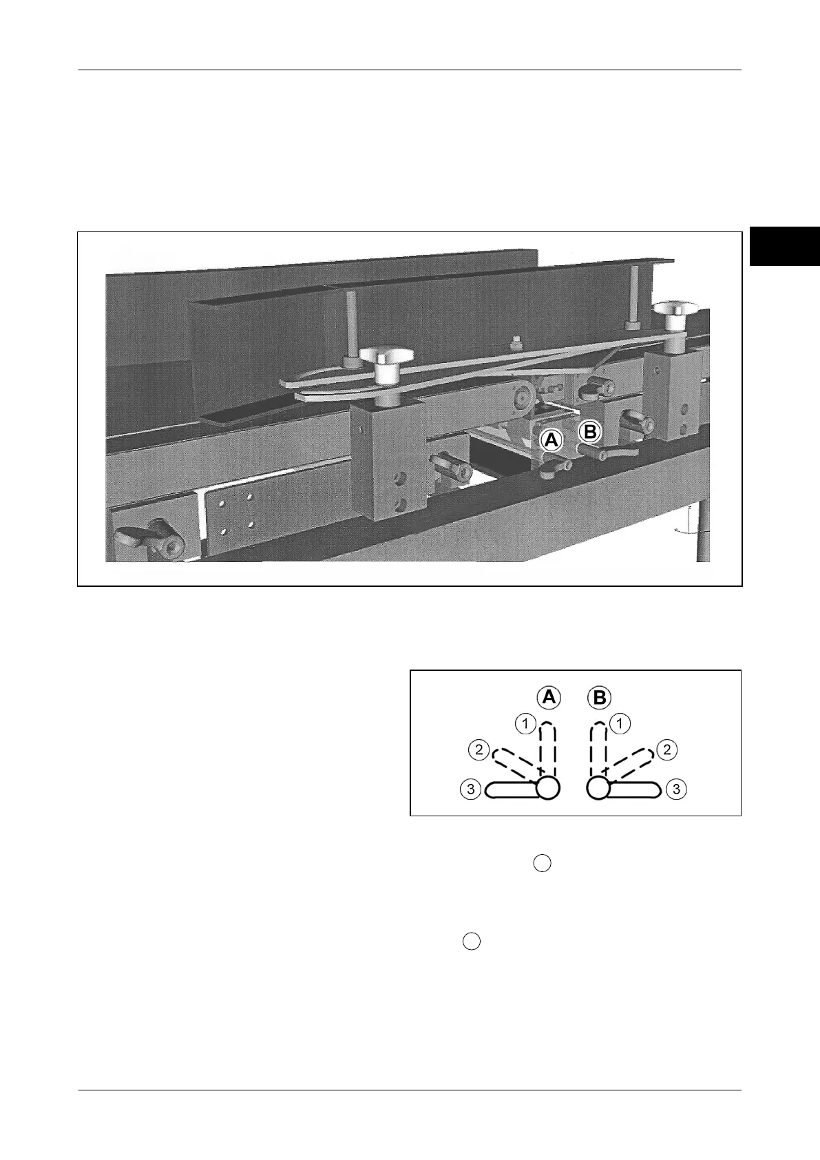 Motorized guide rail adjustment by means of the tilt levers A and B can be defined as fol-