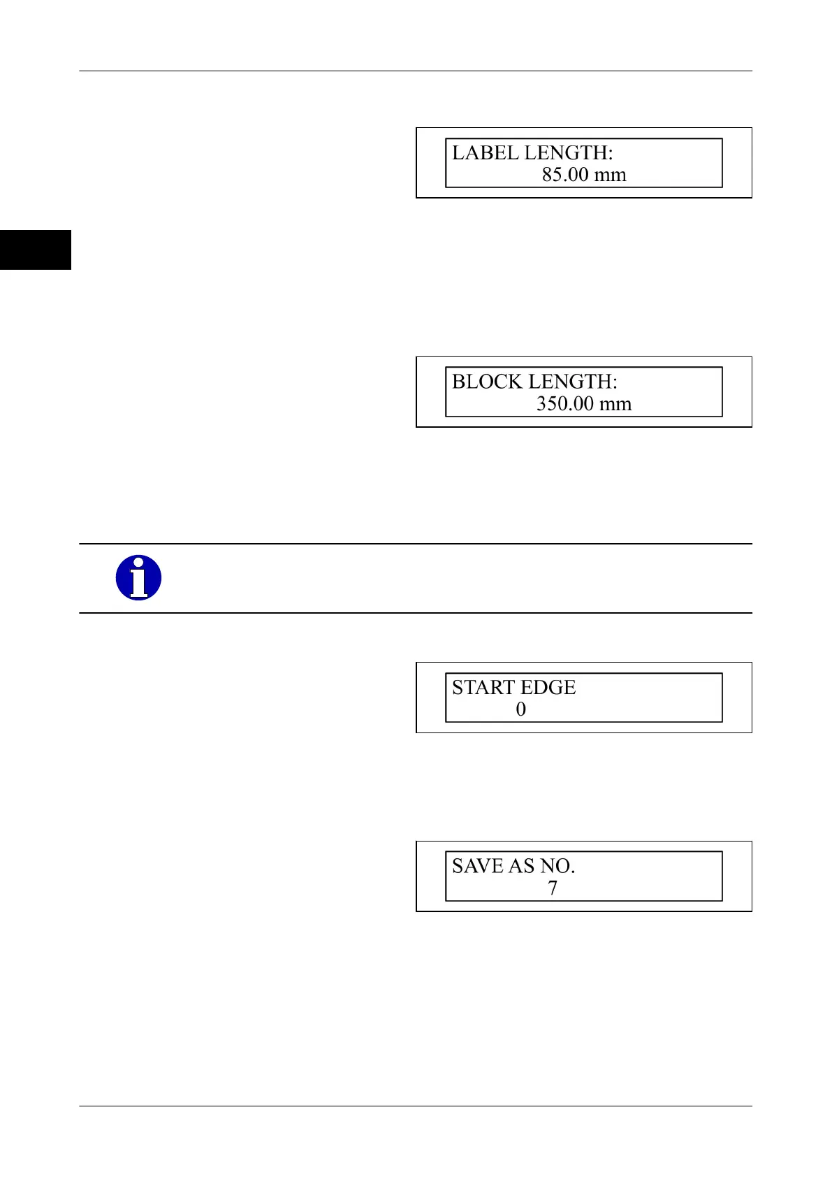 The maximum length of 3000 mm can be set. If 0 mm is entered, the label dispenser is