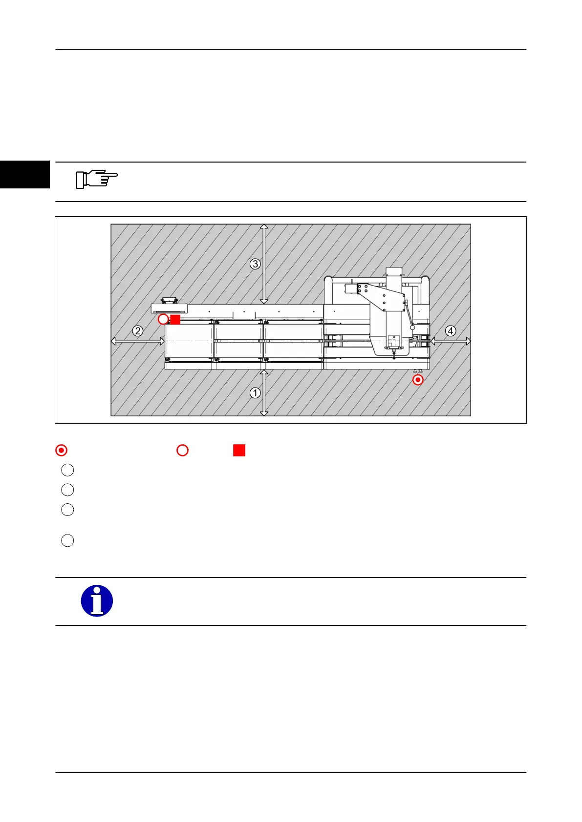 Rear side: Provide sufficient space to allow swiveling of the labeler for cleaning and