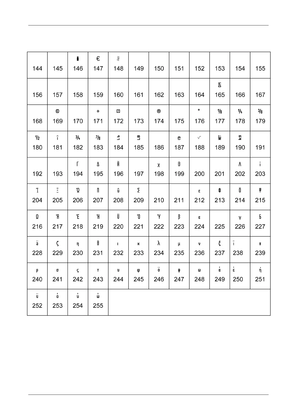 Font set Greek, ASCII 144 - 255