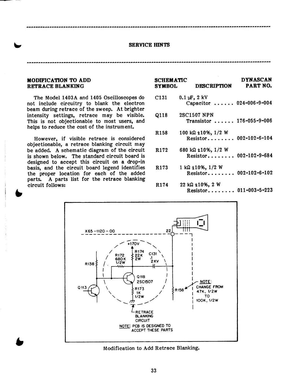 BK Precision 1403A - Service Hints; Retrace Blanking Modification