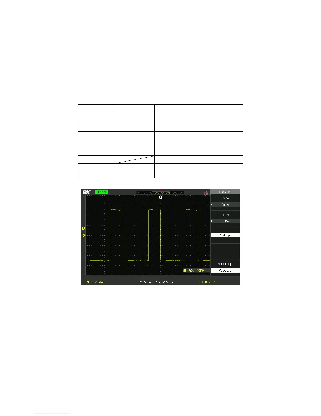 Table 3.19 – Pulse Trigger Function Menu 2