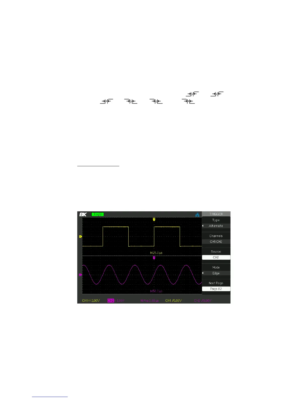 alternate trigger. In this mode, you can observe two irrelative signals at
