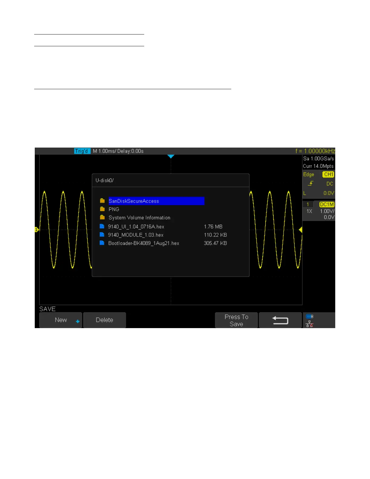 4. Press the Press To Save softkey to enter the SAVE/RECALL le system.