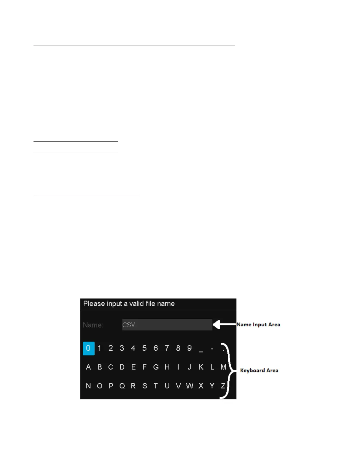 This operation is only valid in external storage. The oscilloscope supports English input method. The le name or folder