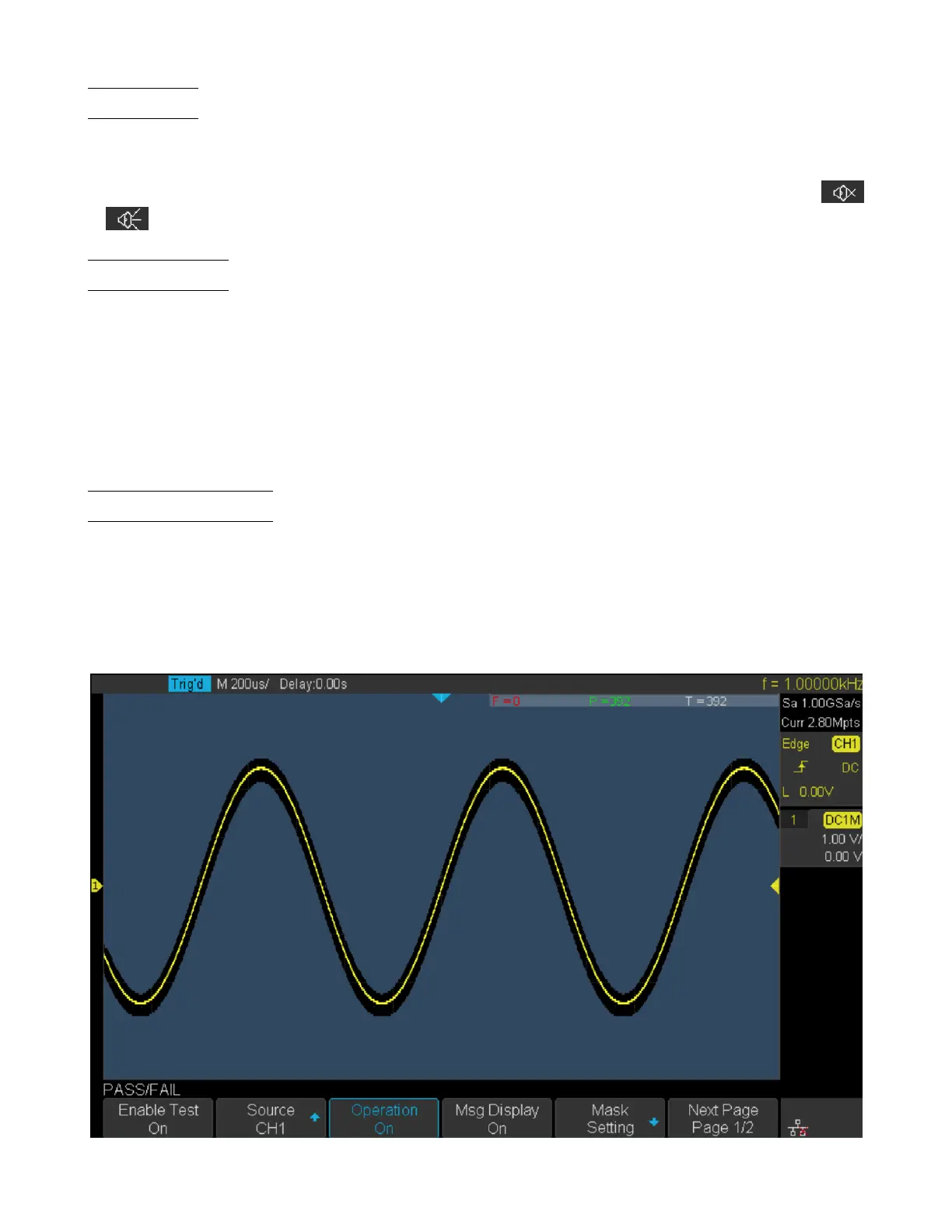 from the [TRIG OUT] connector at the rear panel. Pass/Fail test operates on displayed analog channels; it does not