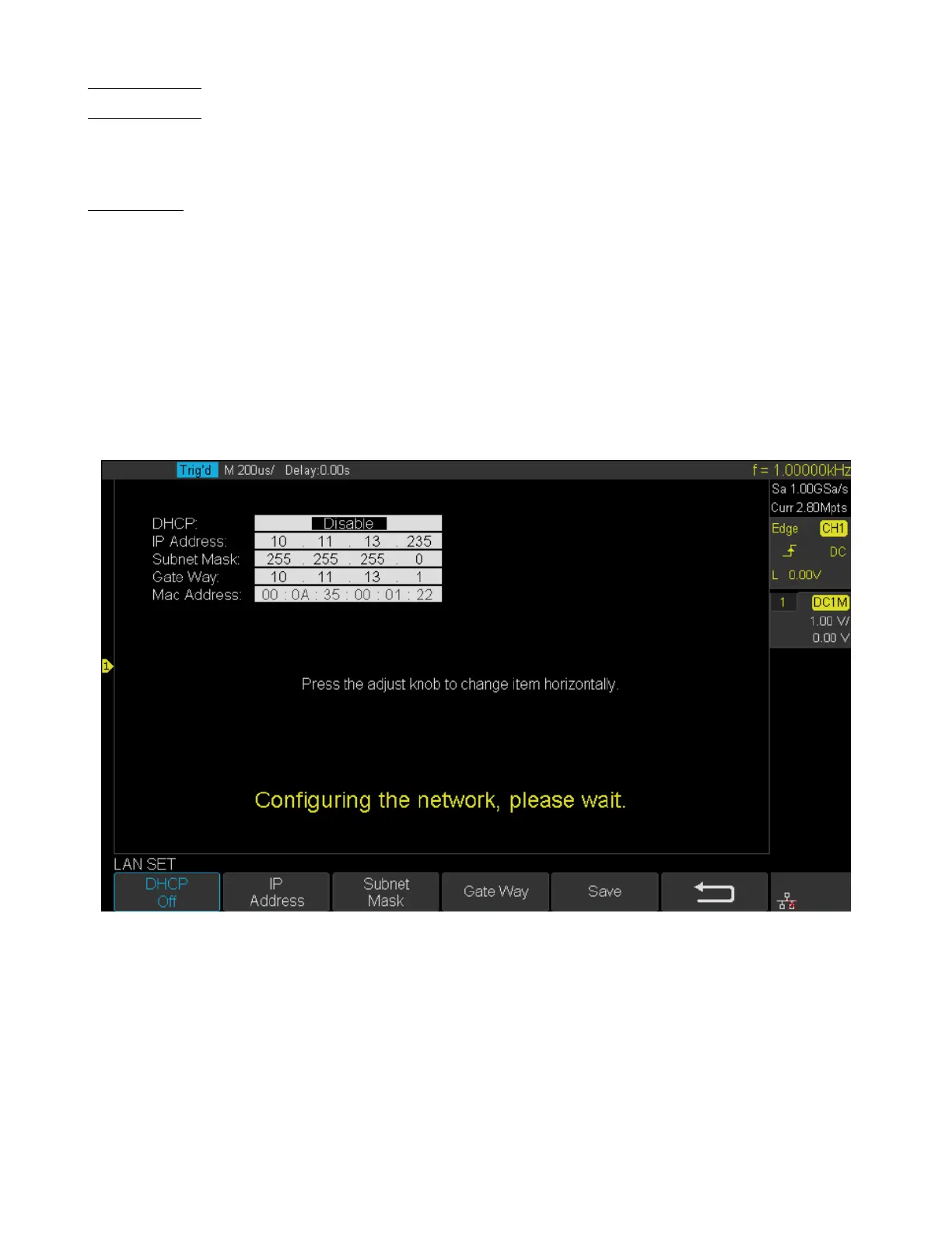 6. Press the DHCP softkey to turn on or turn o the DHCP.