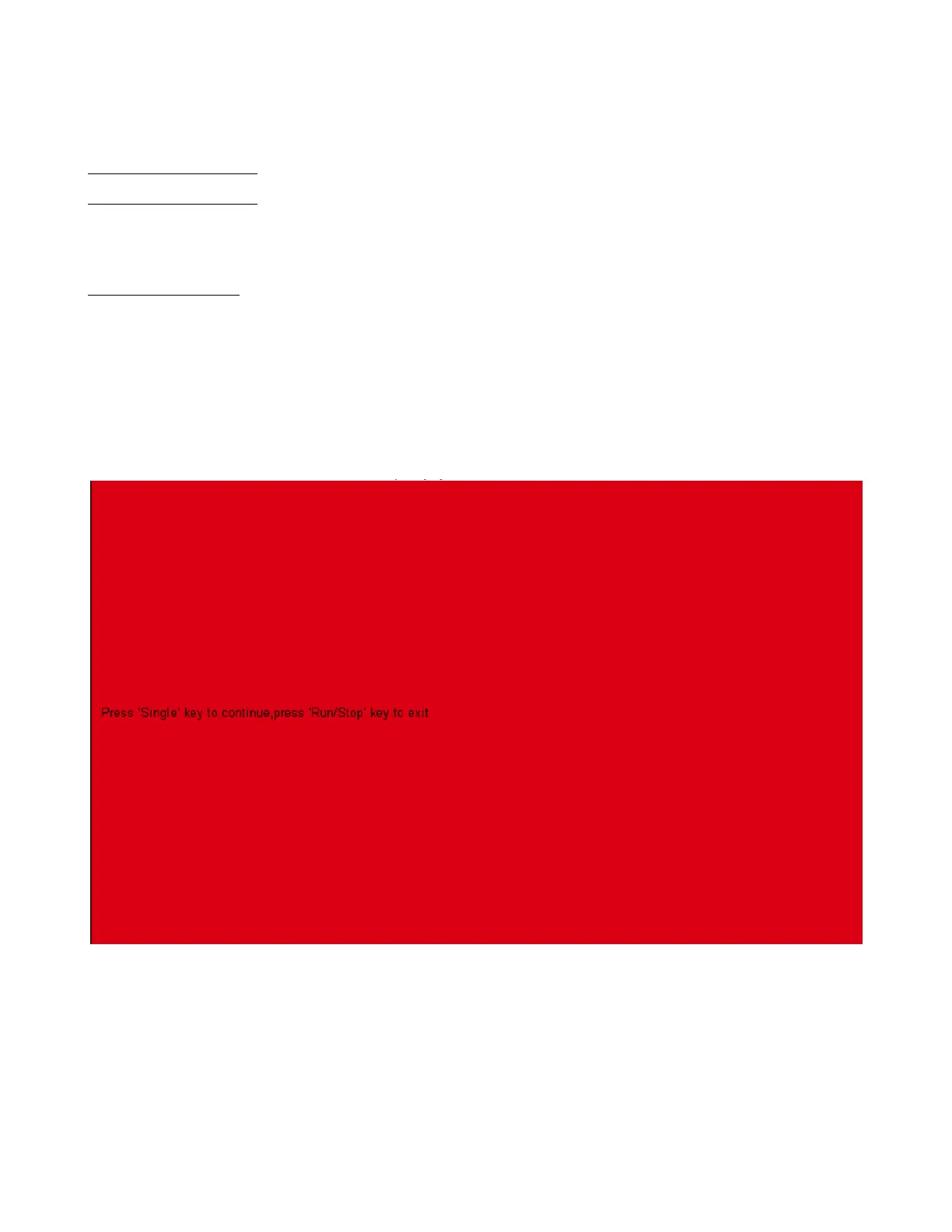 7. Press the Run/Stop key on the front panel to exit the screen test program.