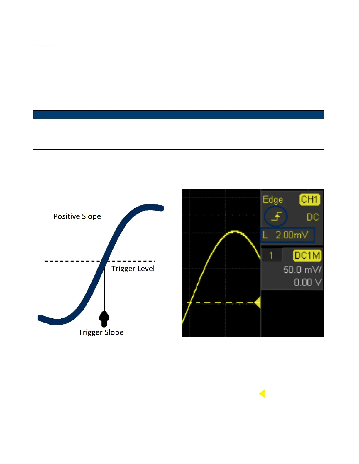 The example in gure 6.3 highlights the Positive edge slope at a trigger level of 2.00 mV.