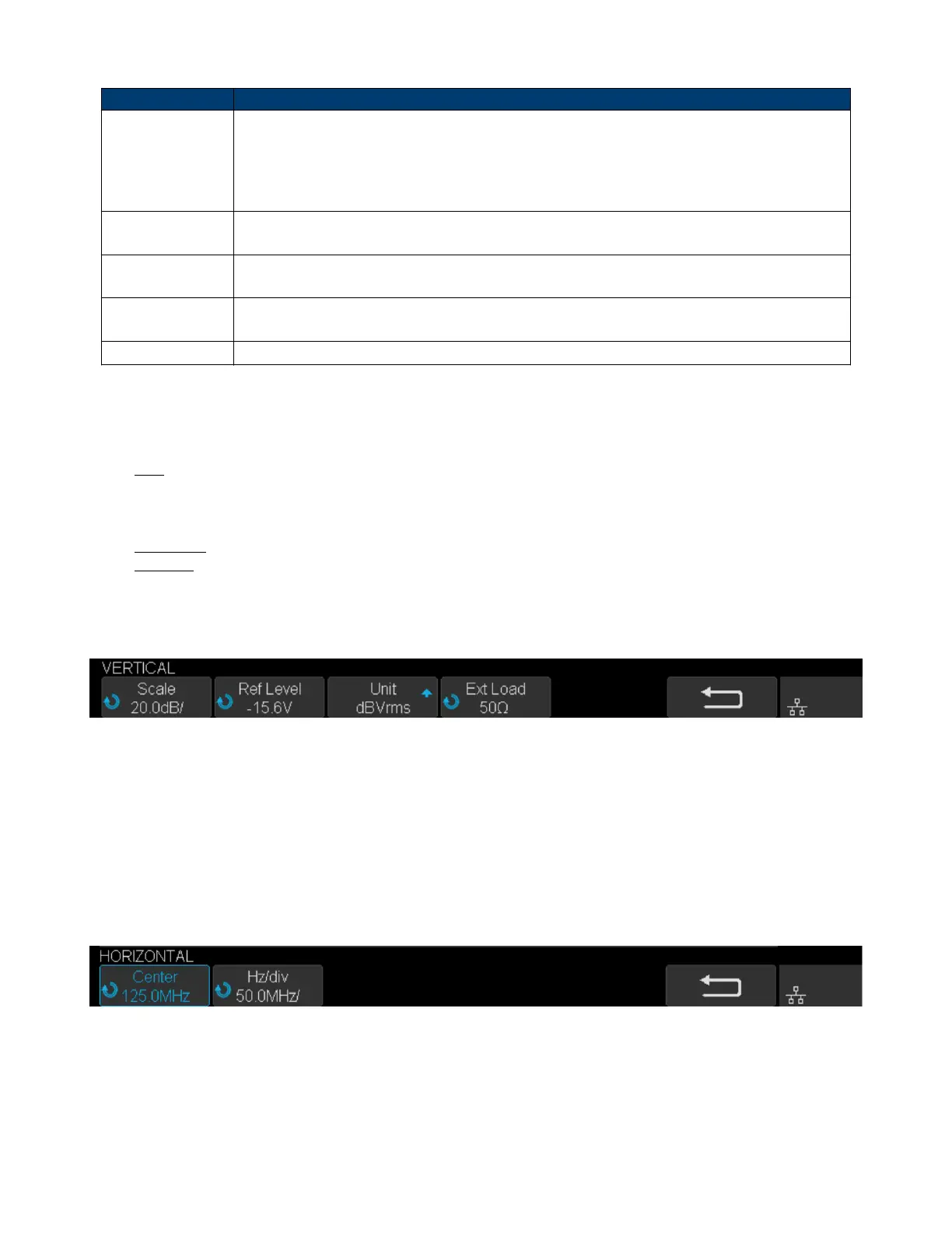 5. Press the Horizontal softkey to enter HORIZONTAL menu.