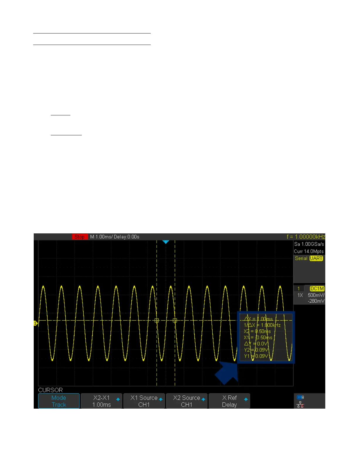 2. Press the Mode softkey and set the cursors mode to Manual or Track.