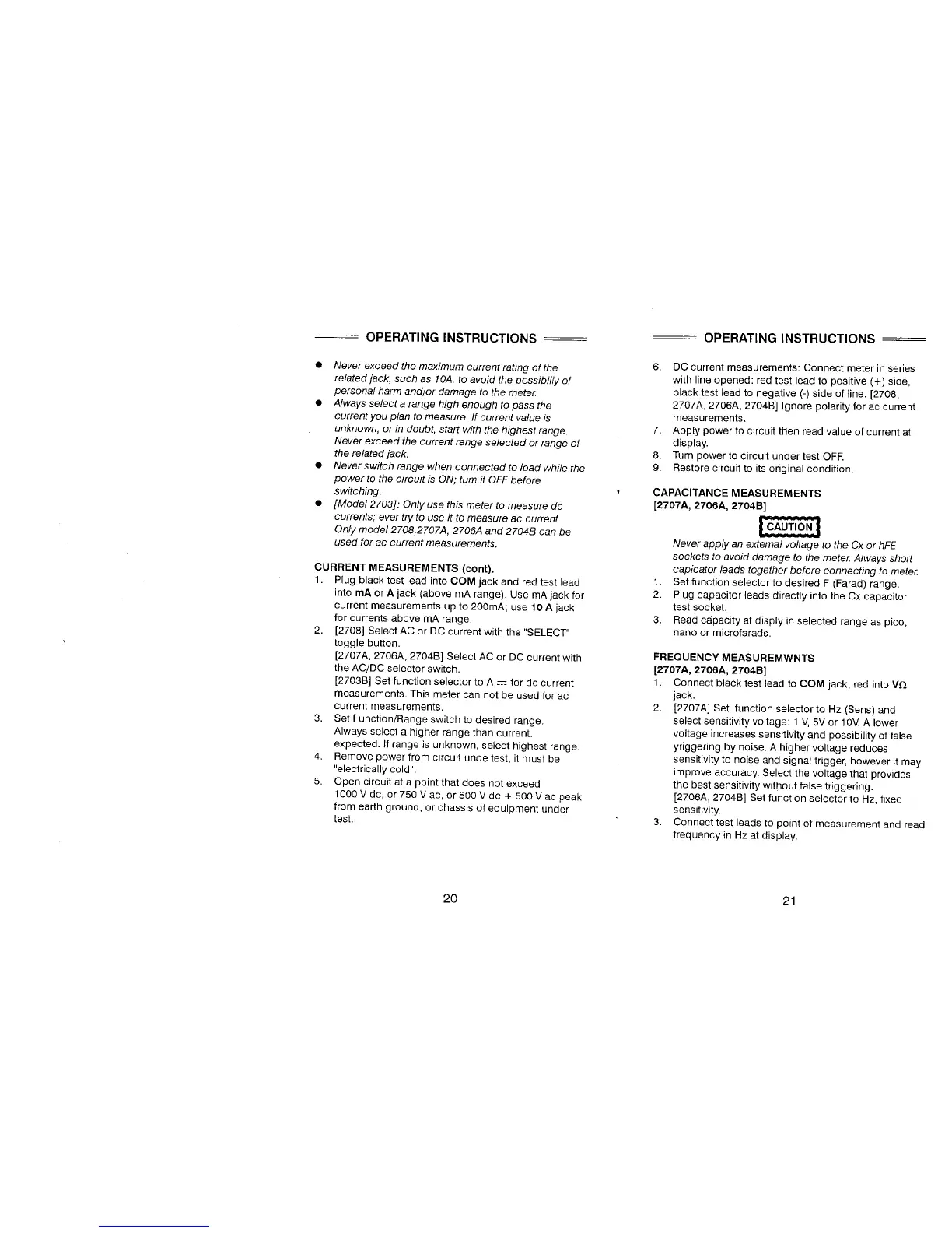 BK Precision 2703B - ADVANCED MEASUREMENT PROCEDURES; CURRENT MEASUREMENTS (CONTINUED); CAPACITANCE MEASUREMENTS; FREQUENCY MEASUREMENTS