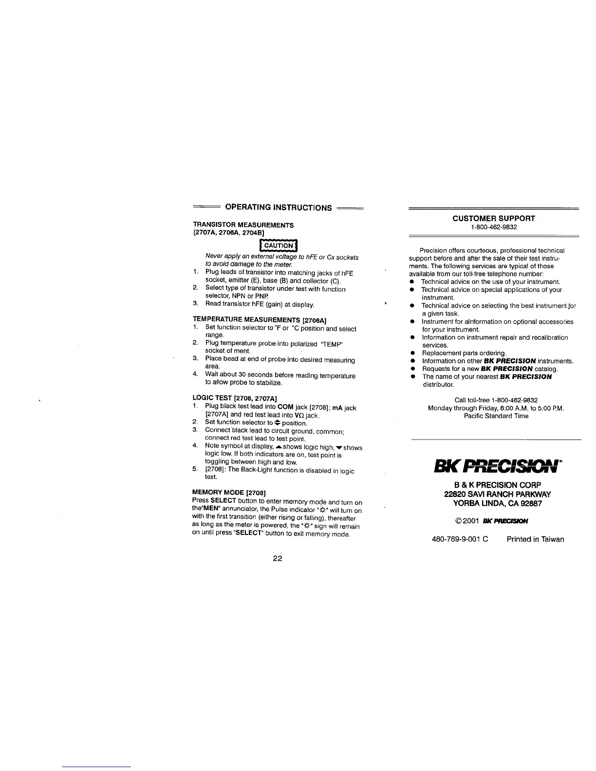 BK Precision 2703B - SPECIALIZED MEASUREMENT TECHNIQUES; TRANSISTOR MEASUREMENTS; TEMPERATURE MEASUREMENTS; LOGIC TEST PROCEDURE