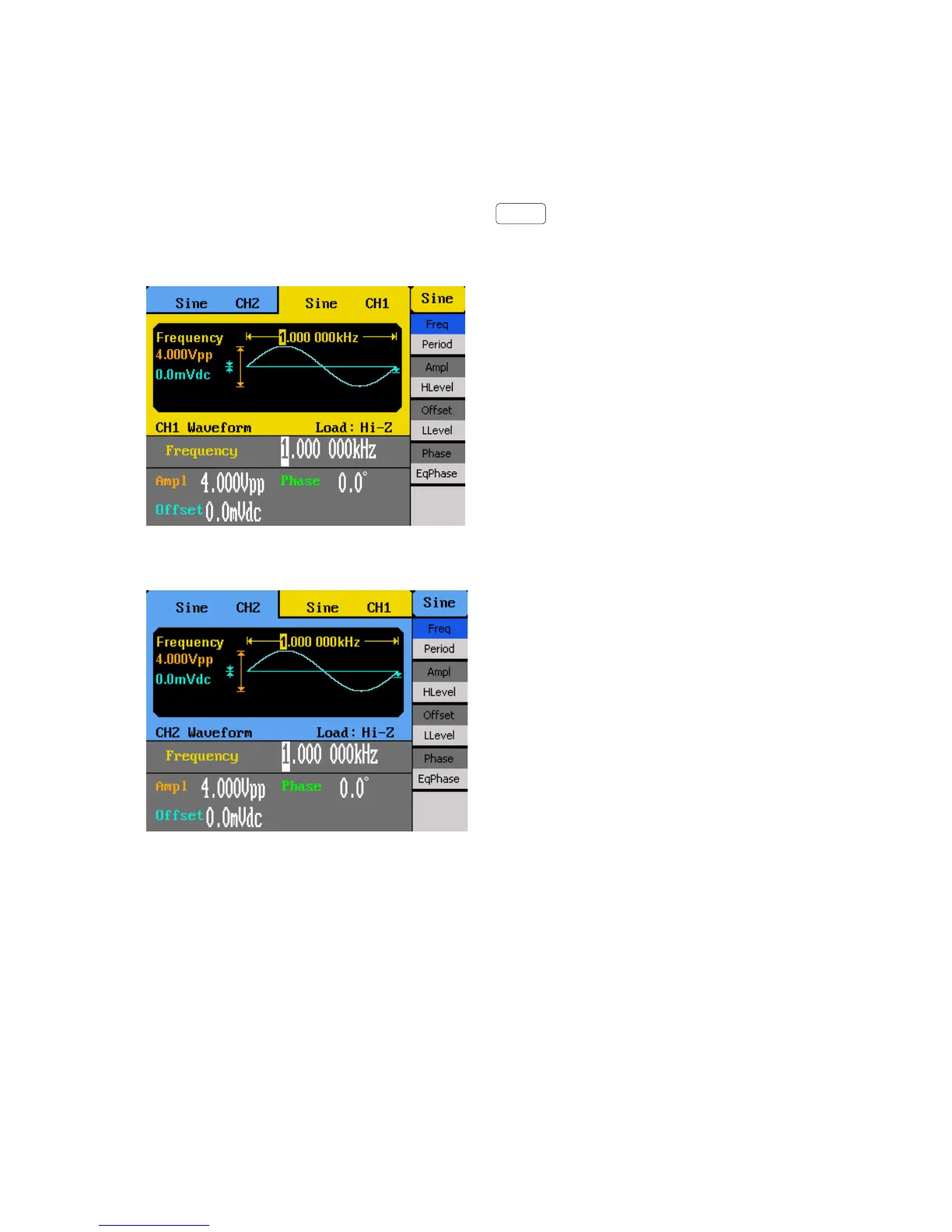 output. Below is a table of waveforms and the corresponding keys to press to generate