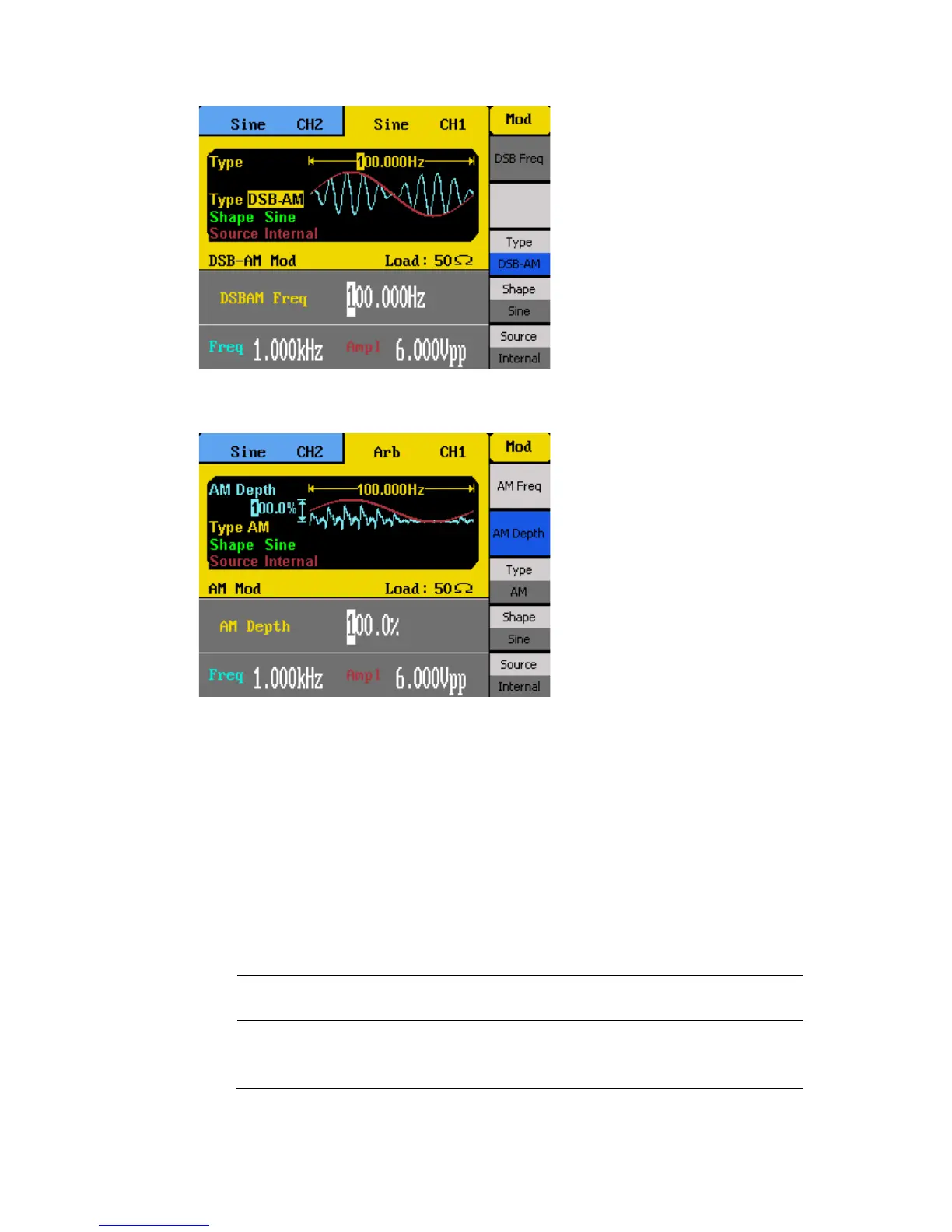 3. To adjust DSB frequency, select DSB Freq option from the menu. DSB-AM frequency