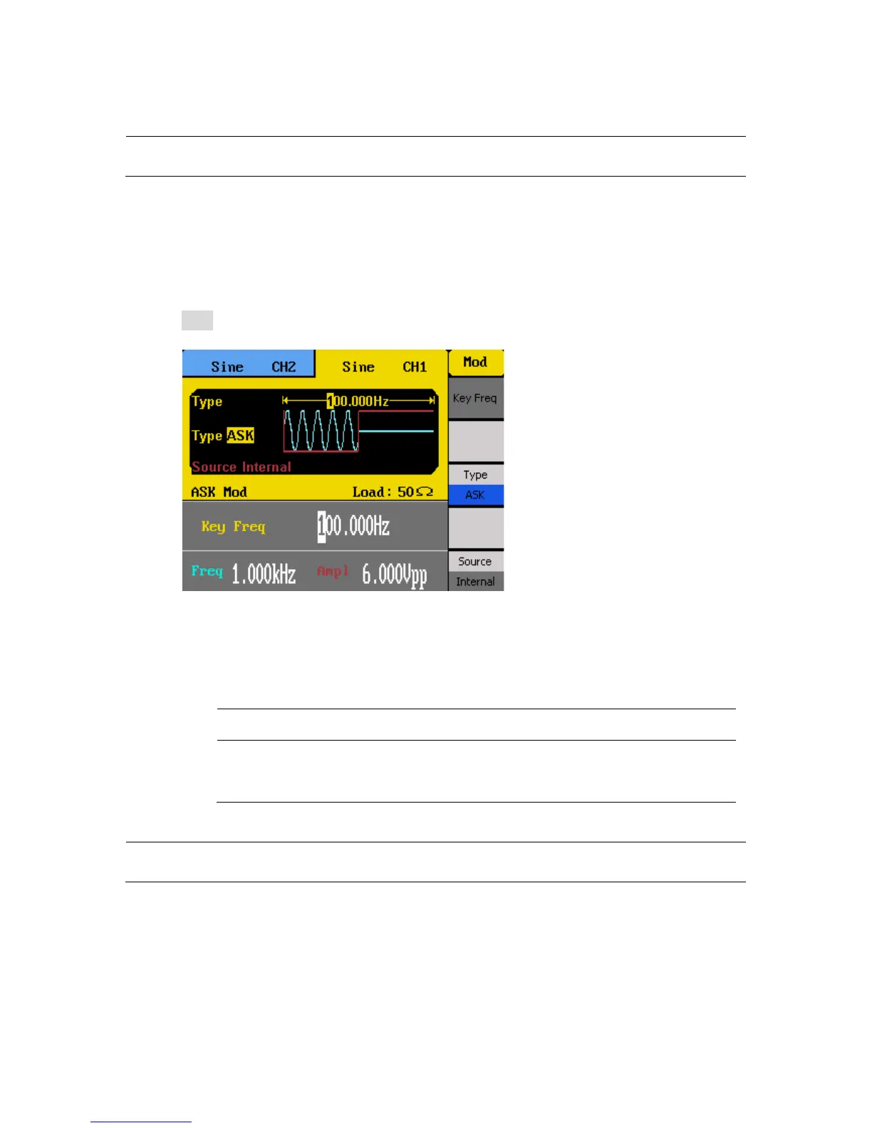 3. To adjust ASK frequency, select Key Freq option from the menu. Key frequency