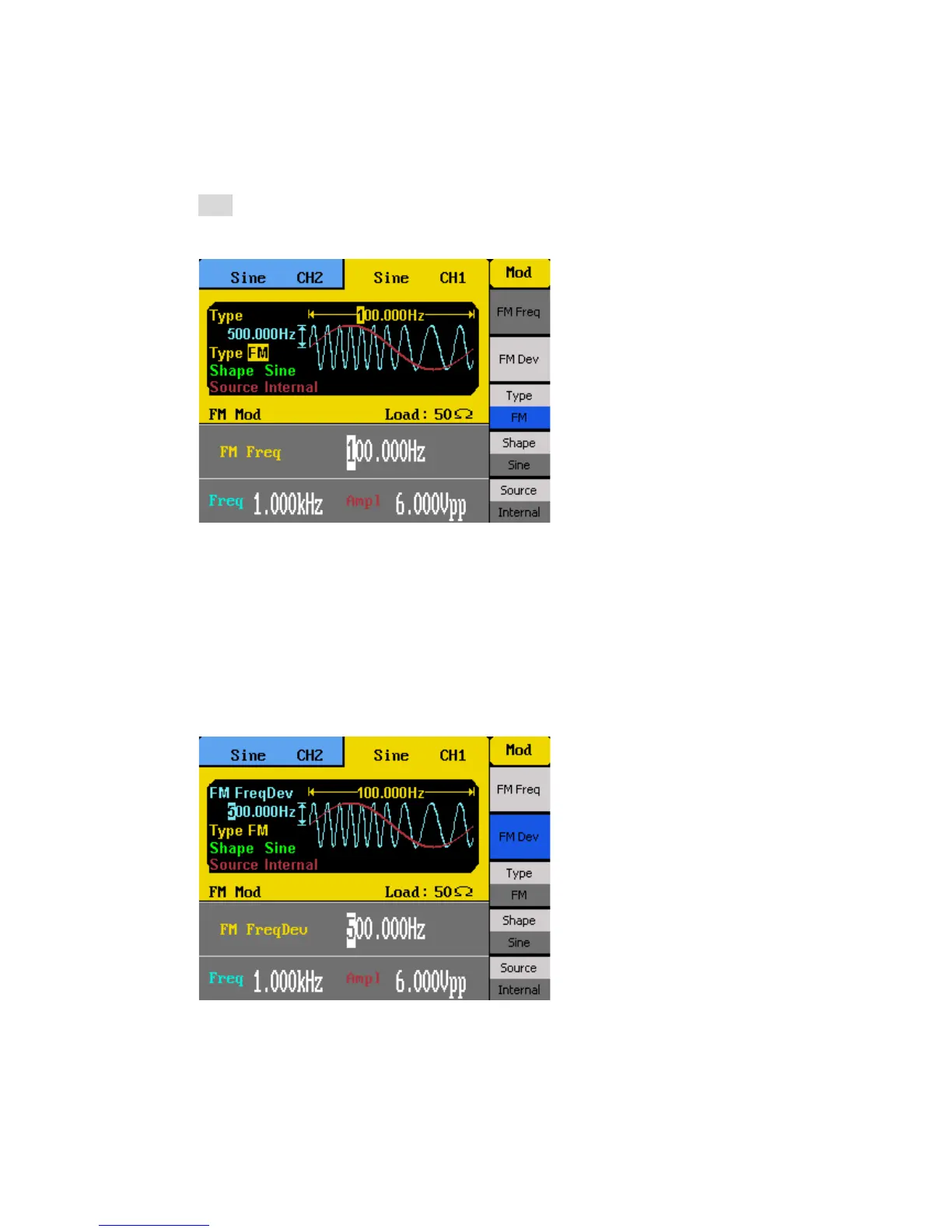 2. There are four parameters that can be adjusted: FM Freq, FM Dev, Shape, and