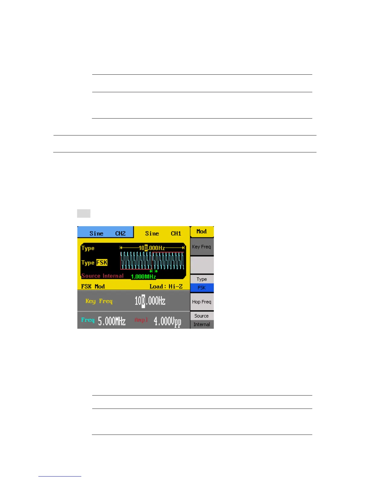 Follow the steps below to setup FSK modulation output.