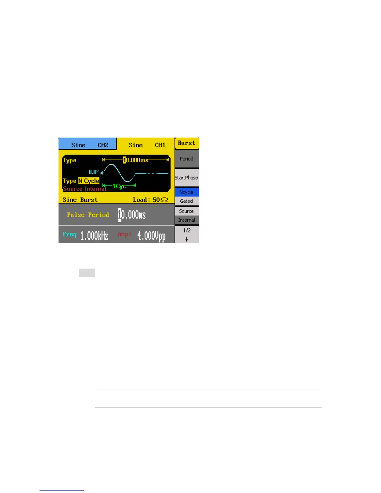 Note: Burst function is available for all waveforms, with the limitation on noise waveform