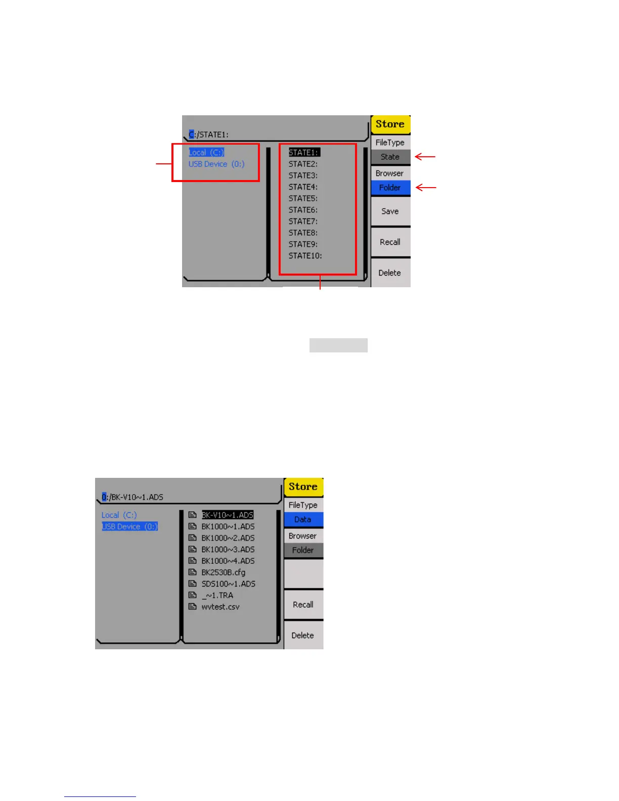 instrument state as well as arbitrary waveforms. If external USB flash drive is selected from