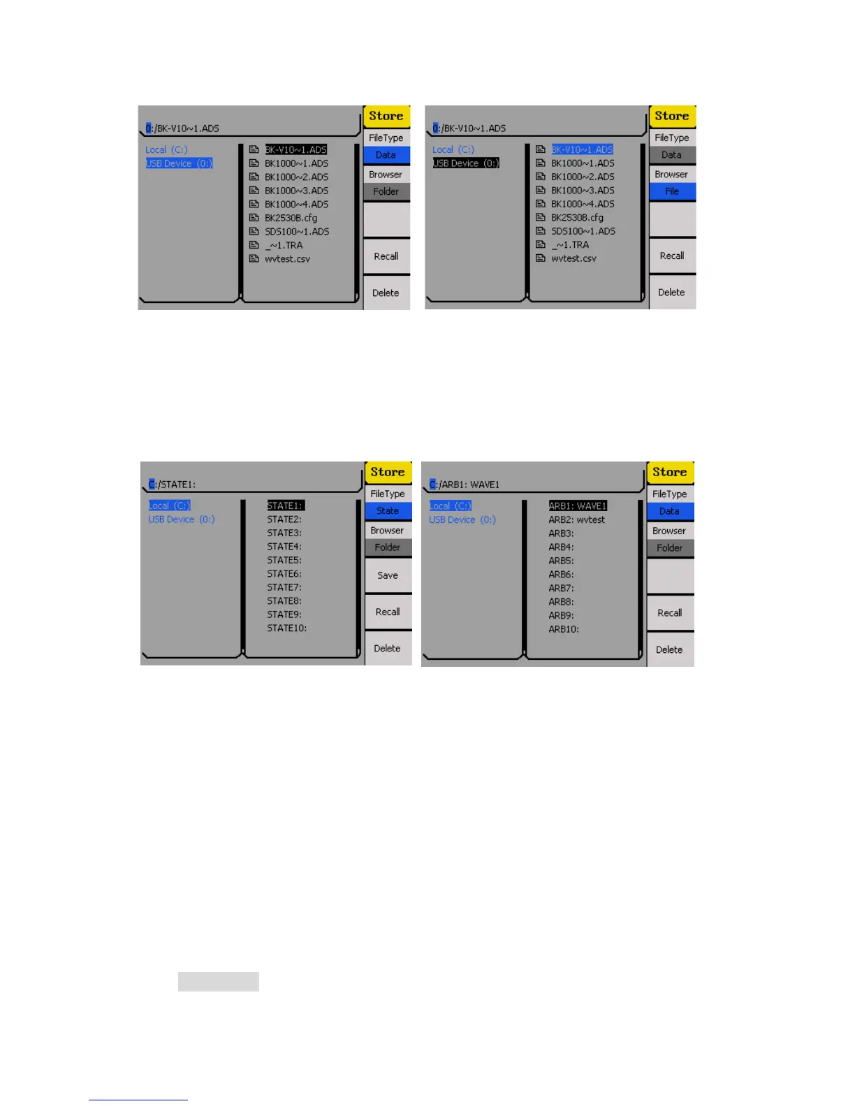 2. From the Store/Recall menu, select Folder under Browser and select Local (C:).