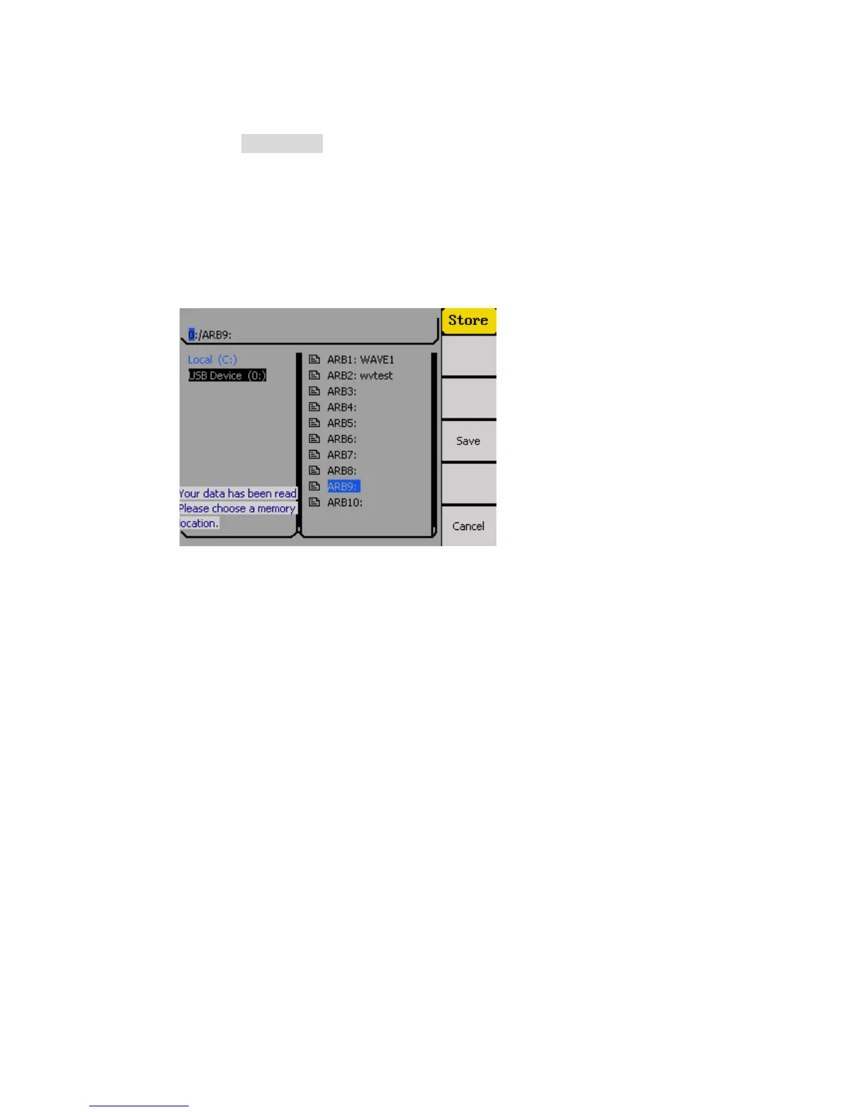 from the USB flash drive that contains the arbitrary waveform data saved from
