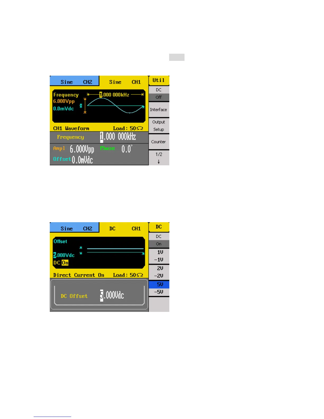 The instrument can output a DC waveform by turning the DC menu option to On. There are