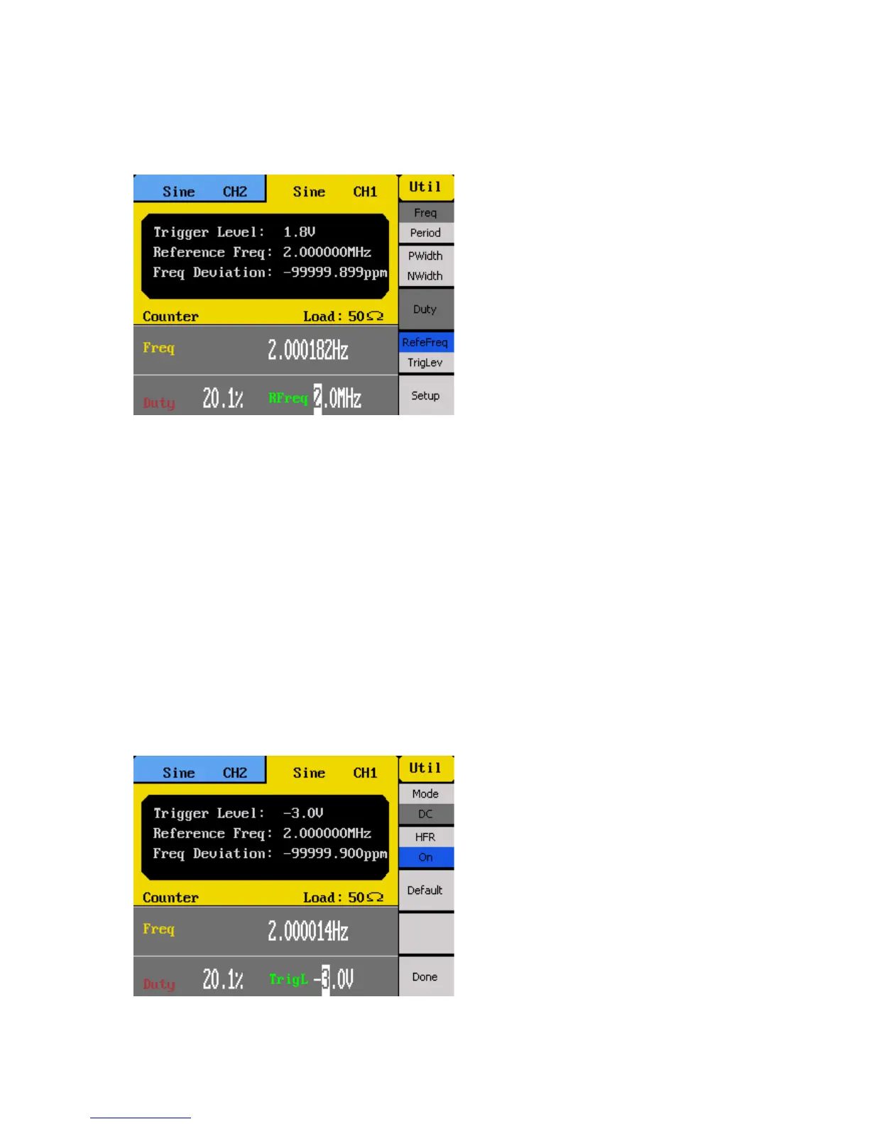 The trigger level of the counter can be adjusted by selecting TrigLev from the menu. Use the