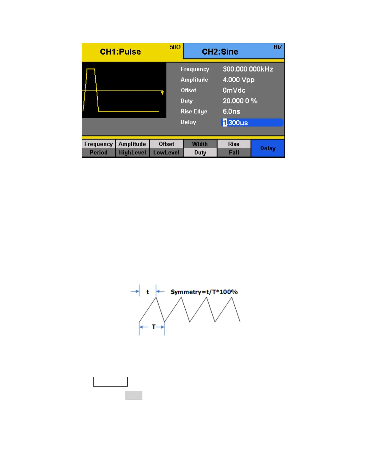 Follow the steps below to configure the symmetry of a ramp/triangle waveform.