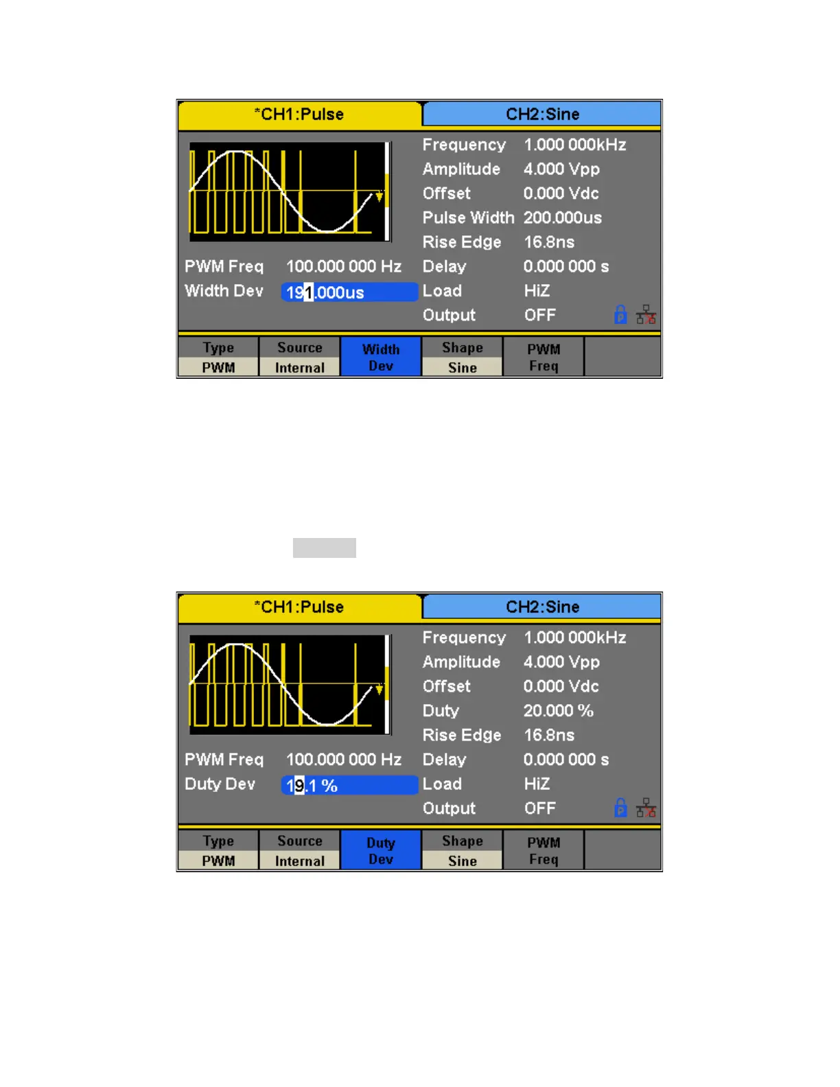 the original duty cycle. Press Duty Dev to highlight the parameter and use the numeric