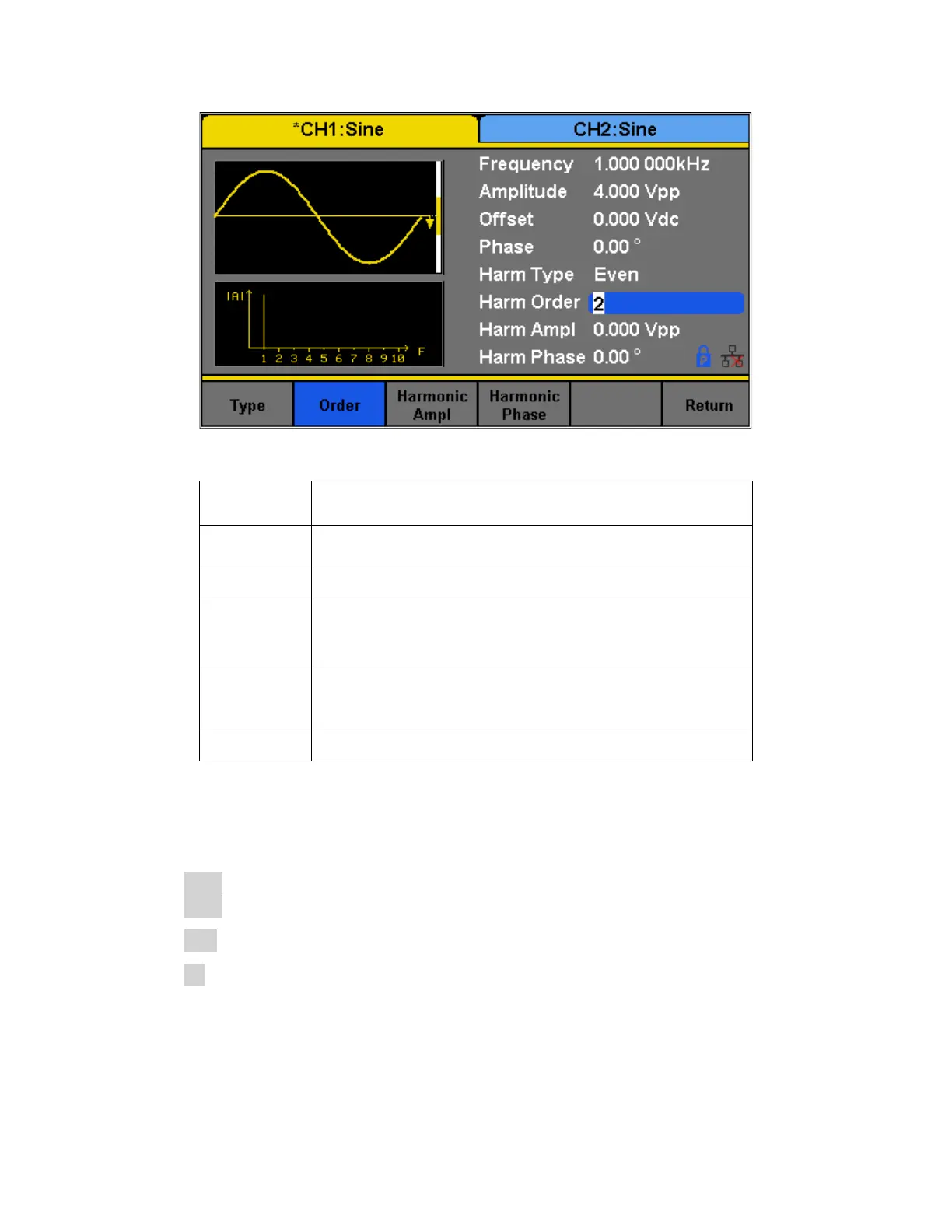 2. Press Even, and the instrument will output fundamental waveform and even harmonics.