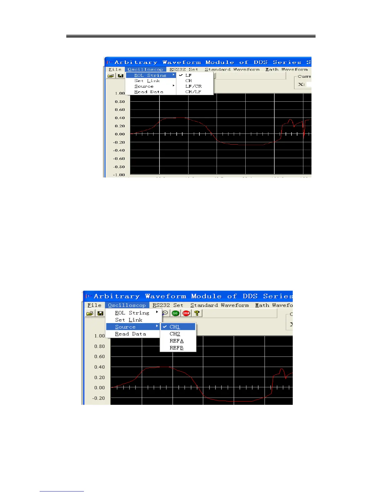 4) Click “Set Link” in the “oscilloscope” menu of the software to check the communications