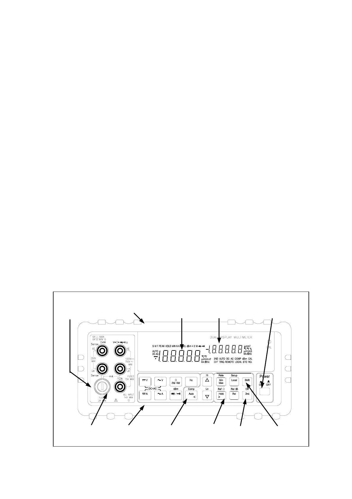 terminals on the left, the primary/secondary displays, and the pushbuttons.