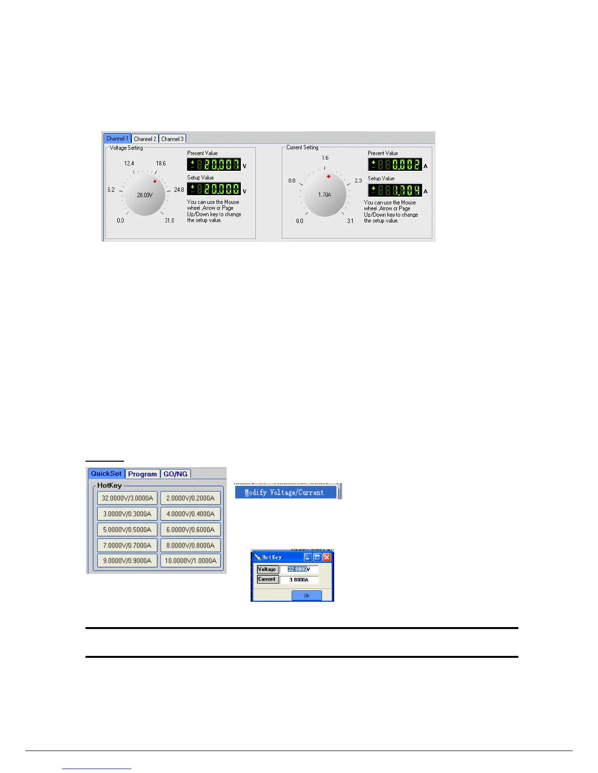 Note: The voltage/current value you set should not exceed the max voltage /current value.