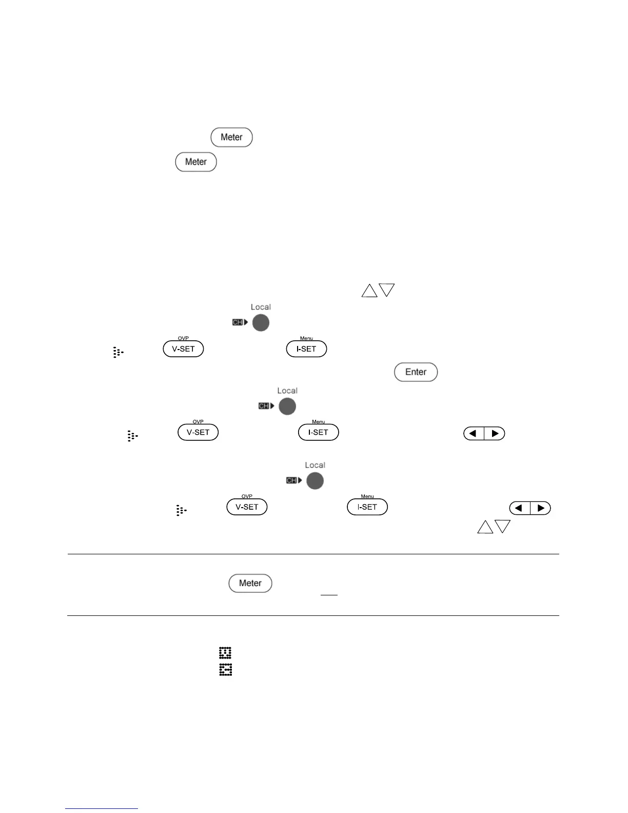 Note: To see the voltage and current setting changes, make sure the instrument is not