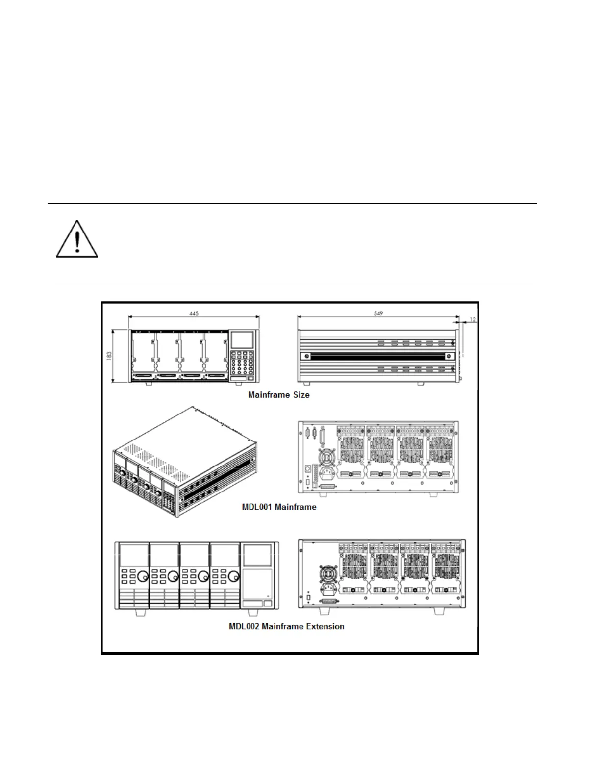 The MDL002 mainframe extension has the same dimensions as the MDL001 mainframe.