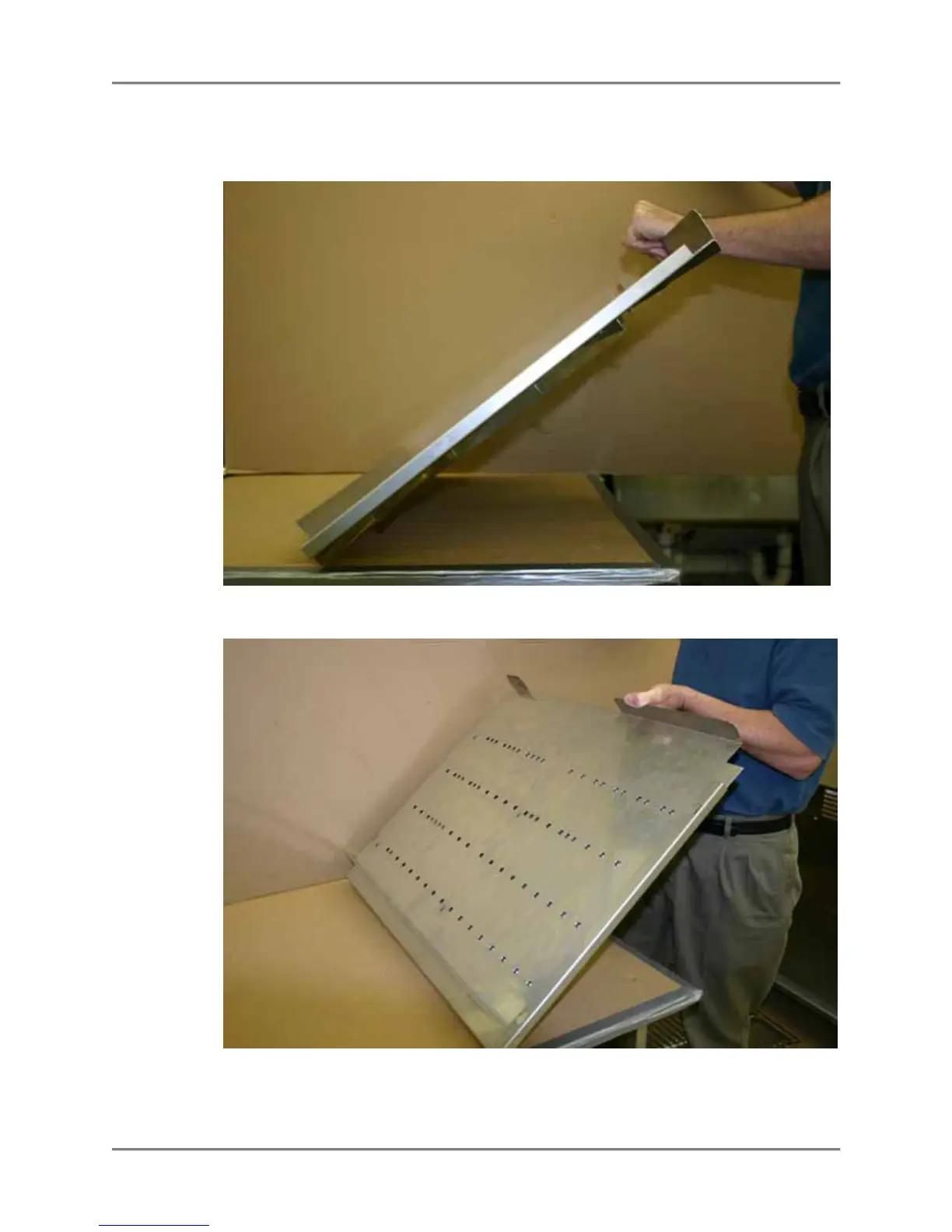b. Slide baffle into position as shown allowing hooks on baffle to engage rack support.