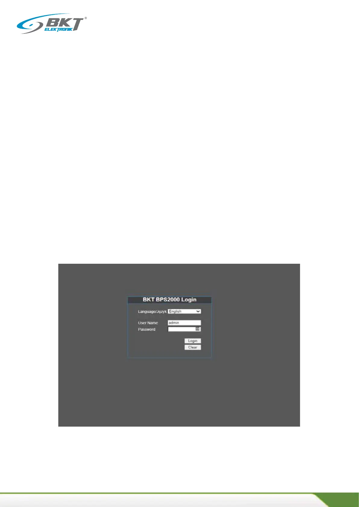 2.Enter the IP address of unit BPS2000 into the browser and press Enter, the login