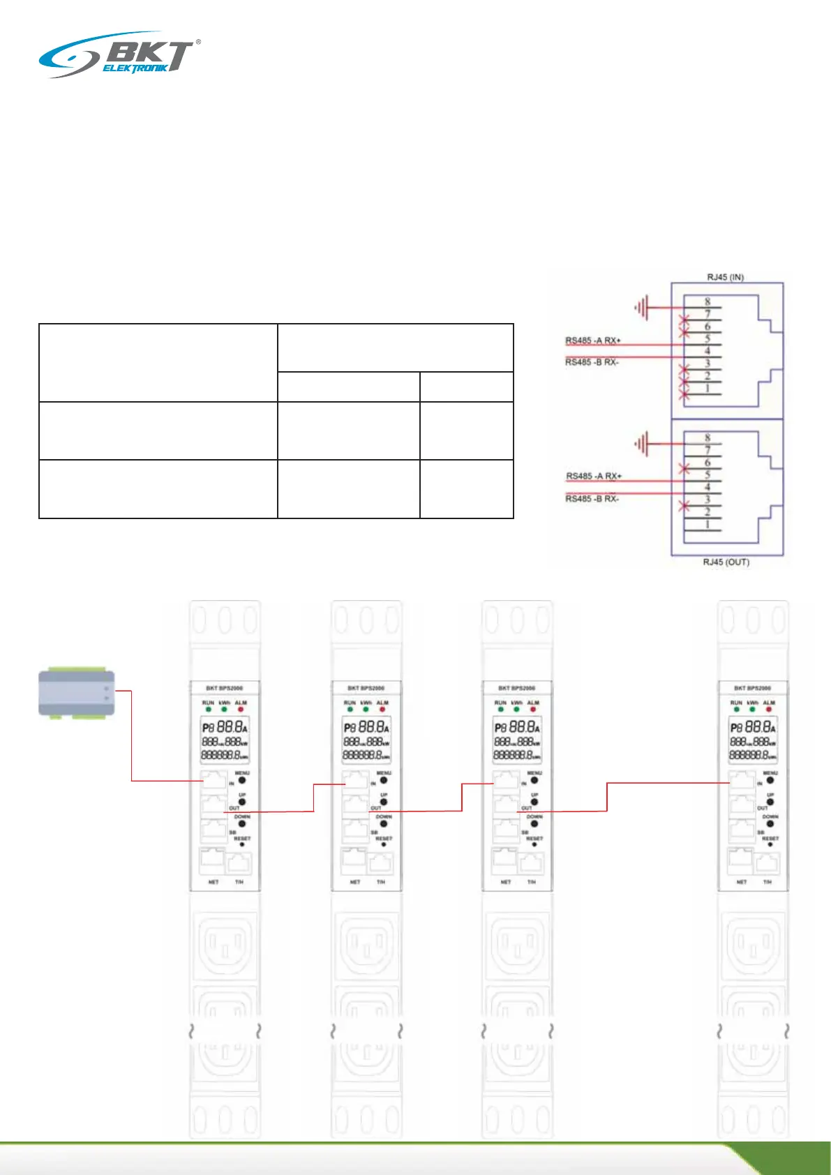Diagram of the connecon of the BPS2000 strip to the ModBusRTU