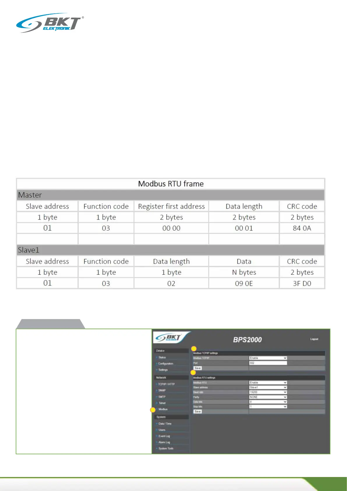 Interface: serial transmission port with two RS-485 lines, asynchronous transmission, bidireconal semi-