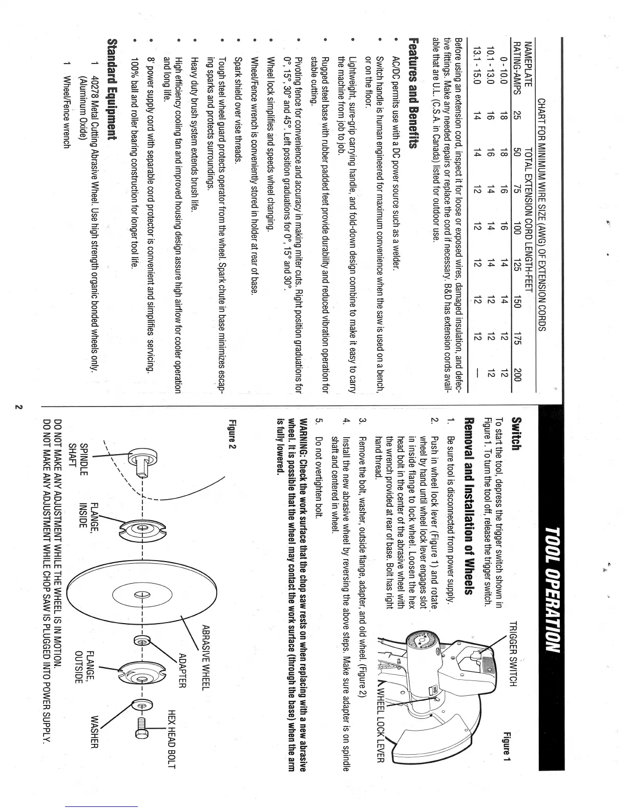 Black & Decker 3935 - Tool Operation; Switch Operation; Wheel Replacement; Standard Equipment