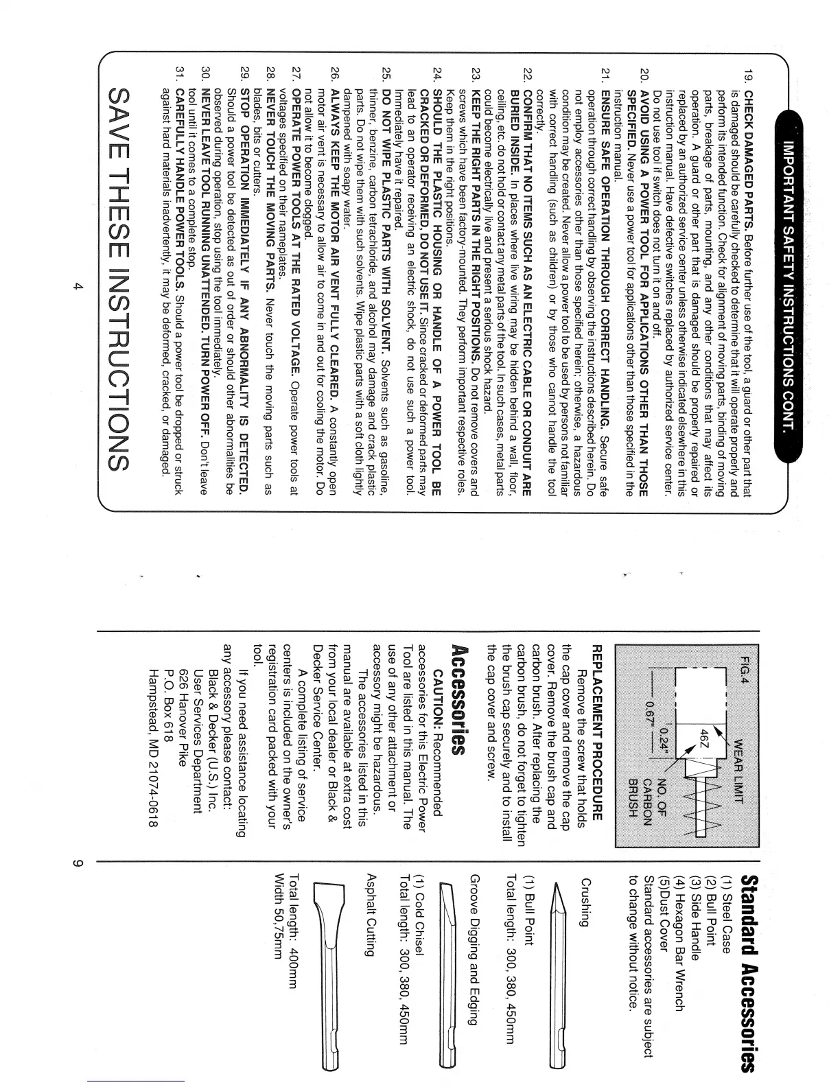 Black & Decker 5021 - Important Safety Instructions Cont.; Replacement Procedure; Accessories