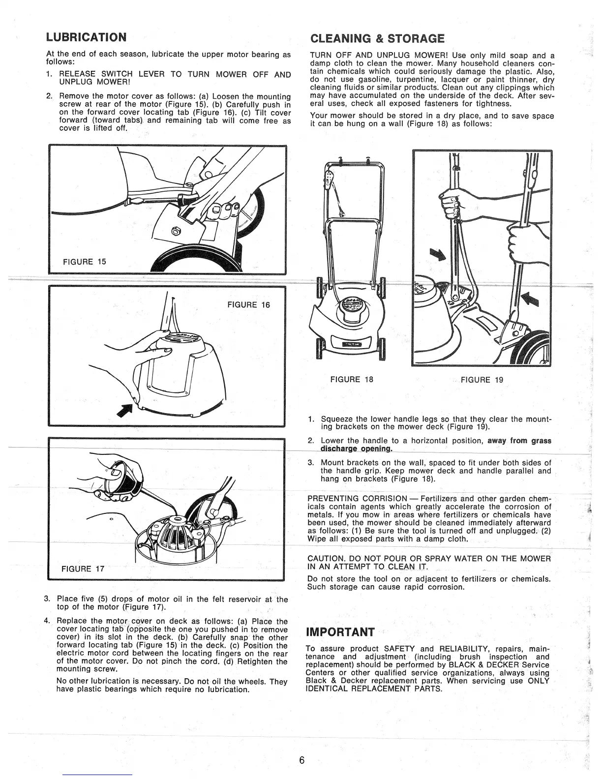 Black & Decker 8000 - Lubrication, Cleaning, and Storage; Motor Lubrication Guide; Cleaning and Storage Instructions