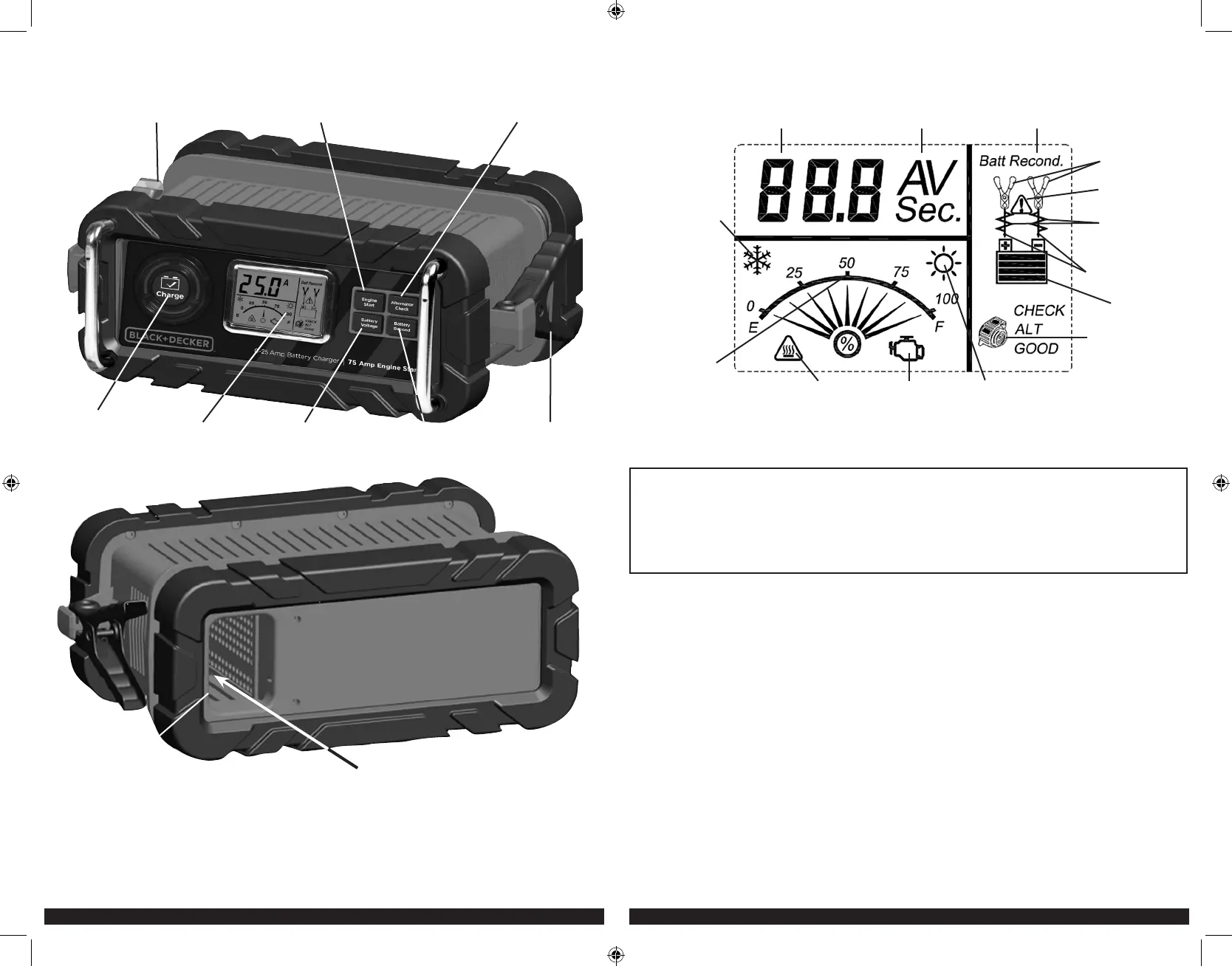 POSITIVE (RED) CLAMP ENGINE START BUTTON ALTERNATOR CHECK BUTTON