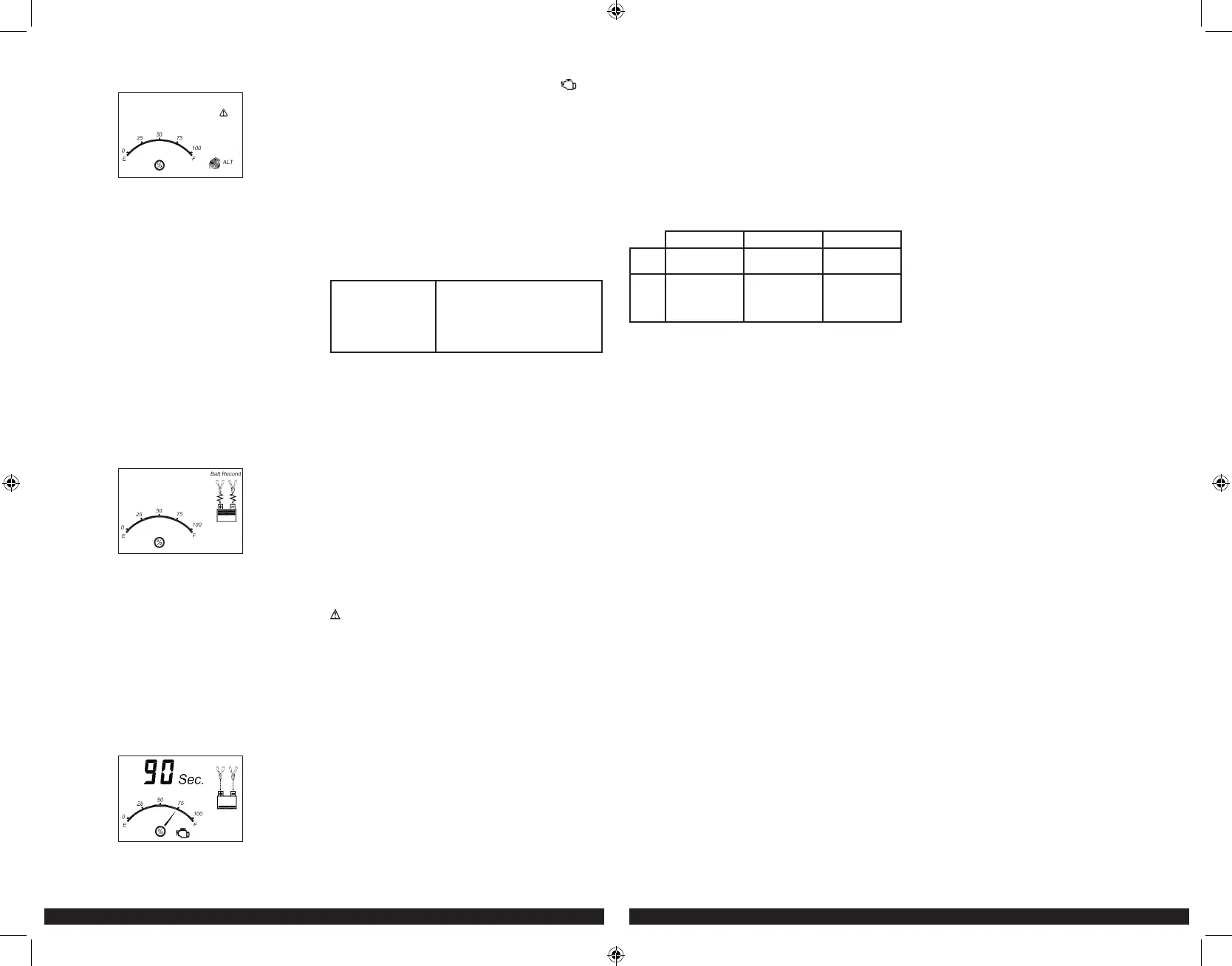 The fault icon will flash; and the alternator icon, “ALT” and the gauge
