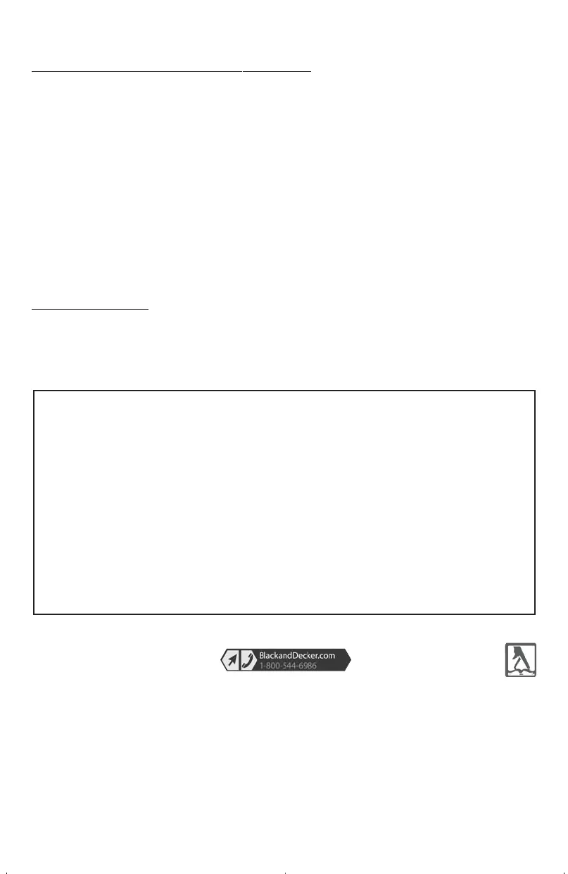 directory under "Tools—Electric" or call: 1-800-544-6986 or visit www.blackanddecker.com.
